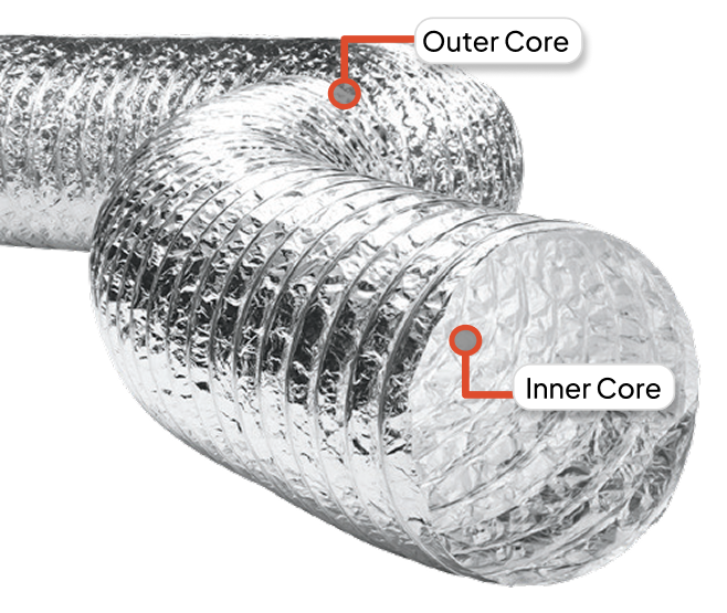 Uninsulated Flexible Ducts PVC Covered Polyester Double Laminated